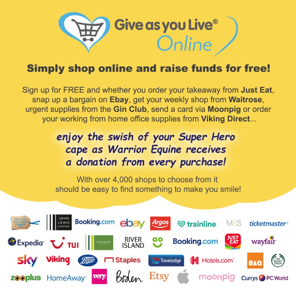 Raise money for us by simply shopping at your favourite online shops. Give as You Live will send us a donation for every purchase you make, without costing you a single penny extra!